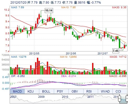 | 今 開: | 7.79 | 成交量: | 9816手 | 振 幅: | 2.17% |
