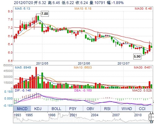 | 昨 收: | 6.36 | 流通市值: | 10.84億(yi) | 市盈率TTM: | -- |