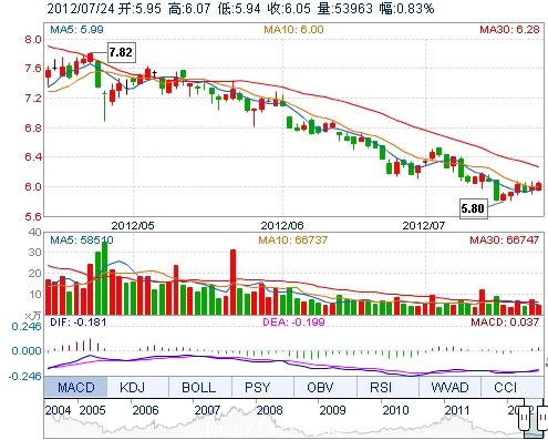 今 開: 5.95 成交量: 53962手 振 幅: 2.17% 最 高: 6.07 成交額: 3253.44萬(wan) 換手率: 0.57% 最 低: 5.94 總市值: 63.19億(yi) 市淨率: 2.12 昨 收: 6.00 流通市值...