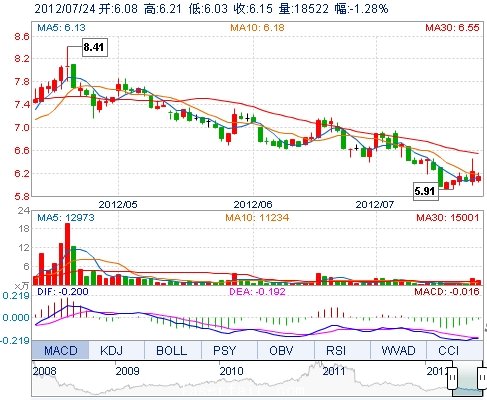 今 開: 6.08 成交量: 18521手 振 幅: 2.89% 最 高: 6.21 成交額: 1133.76萬(wan) 換手率: 0.67% 最 低: 6.03 總市值: 17.53億(yi) 市淨率: 2.81 昨 收: 6.23 流通市值...