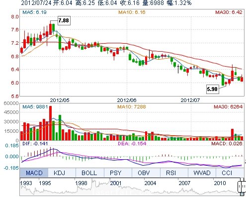 | 今 開: | 6.04 | 成交量: | 6988手 | 振 幅: | 3.45% |