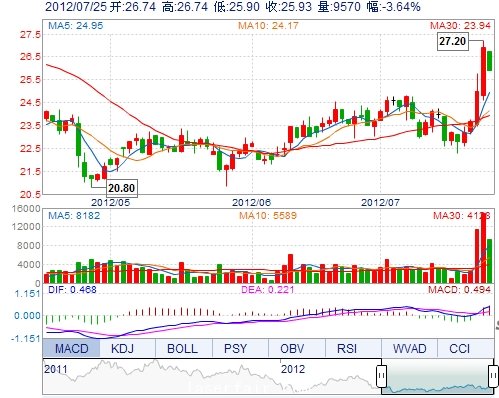 | 今 開: | 26.74 | 成交量: | 9569手 | 振 幅: | 3.12% |