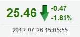 | 今 開: | 26.01 | 成交量: | 6500手 | 振 幅: | 3.43% |