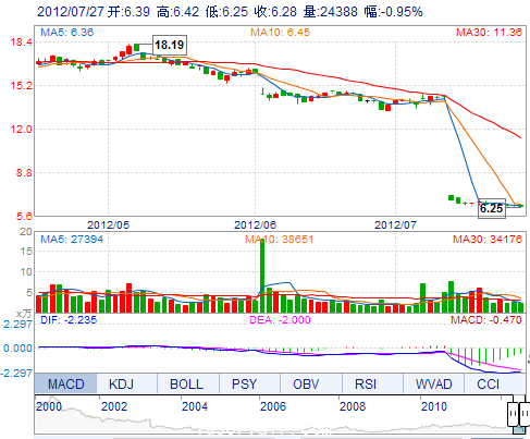 | 今 開: | 6.39 | 成交量: | 24387手 | 振 幅: | 2.68% |