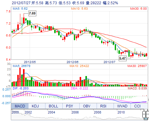 | 今 開: | 7.55 | 成交量: | 12146手 | 振 幅: | 4.50% |
