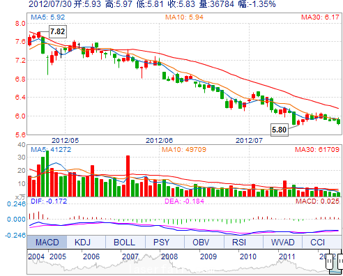 | 最 低: | 5.81 | 總市值: | 60.89億(yi) | 市淨率: | 2.05 |
