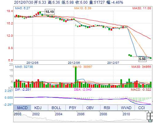 | 今 開: | 6.33 | 成交量: | 51726手 | 振 幅: | 6.05% |