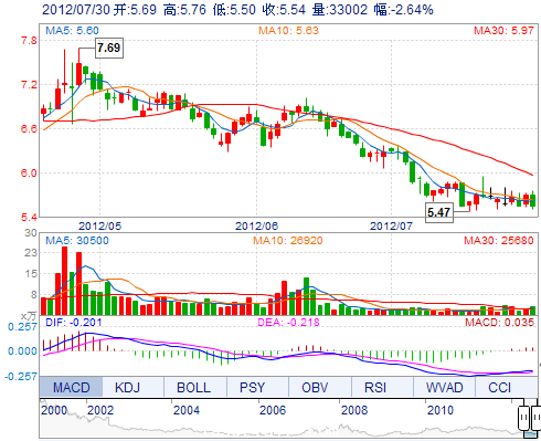 | 今 開: | 5.69 | 成交量: | 33002手 | 振 幅: | 4.57% |