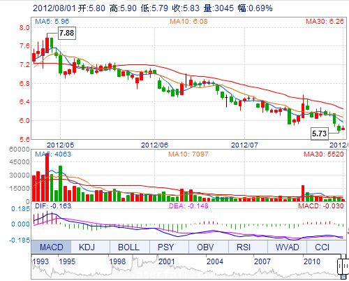 | 今 開: | 5.80 | 成交量: | 3045手 | 振 幅: | 1.90% |