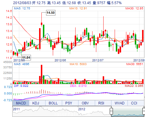 今 開: 12.75 成交量: 9756手 振 幅: 6.04% 最 高: 13.45 成交額: 1289.37萬(wan) 換手率: 2.93% 最 低: 12.68 總市值: 9.01億(yi) 市淨率: 2.90 昨 收: 12.74 流通市...