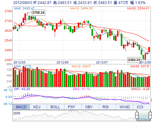 | 昨 收: | 2436.54 | 成交量: | 4731520手 |