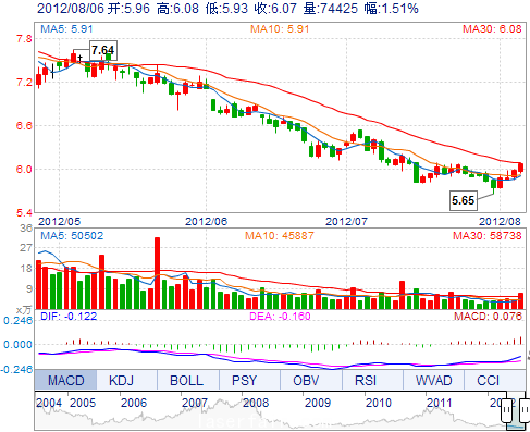 | 最 低: | 5.93 | 總市值: | 63.39億(yi) | 市淨率: | 2.13 |