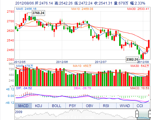 | 昨 收: | 2483.51 | 成交量: | 6791248手 |