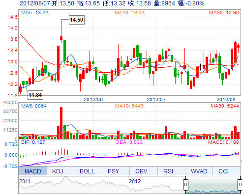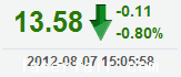 | 今 開: | 13.50 | 成交量: | 8963手 | 振 幅: | 2.41% |