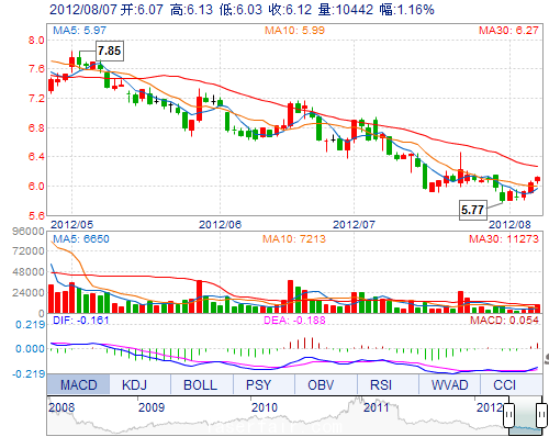 今 開: 6.07 成交量: 10442手 振 幅: 1.65% 最 高: 6.13 成交額: 636.29萬(wan) 換手率: 0.38% 最 低: 6.03 總市值: 17.44億(yi) 市淨率: 2.79 昨 收: 6.05 流通市值:...