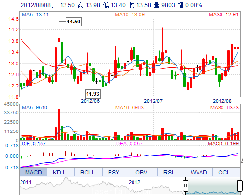 | 今 開: | 13.50 | 成交量: | 9803手 | 振 幅: | 4.27% |