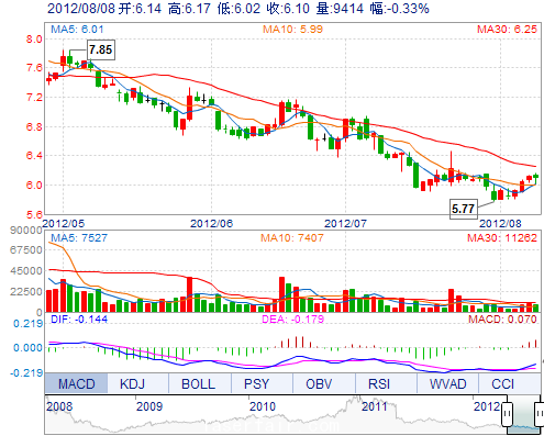 今 開: | 6.14 | 成交量: | 9414手 | 振 幅: | 2.45% |