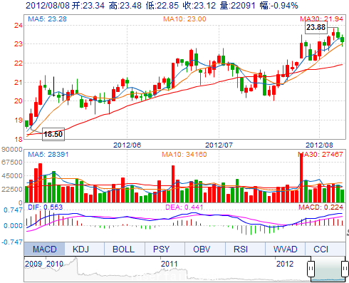 | 今 開: | 23.34 | 成交量: | 22090手 | 振 幅: | 2.70% |
