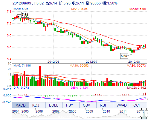 | 昨 收: | 6.02 | 流通市值: | 57.81億(yi) | 市盈率TTM: | 18.60 |