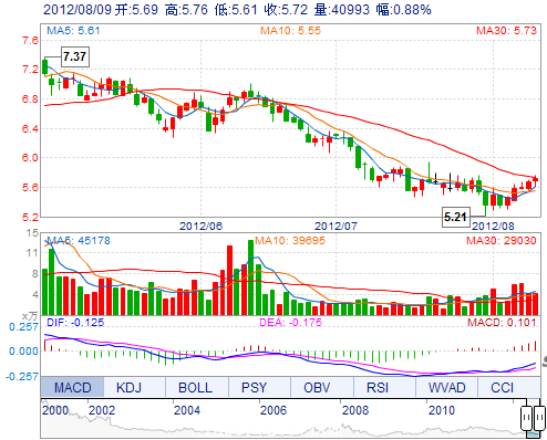 | 今 開: | 5.69 | 成交量: | 40993手 | 振 幅: | 2.65% |