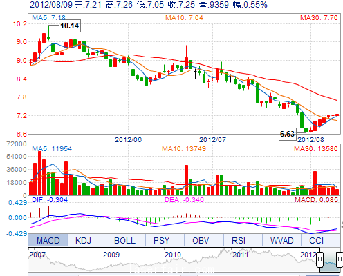 | 今 開: | 7.21 | 成交量: | 9359手 | 振 幅: | 2.91% |