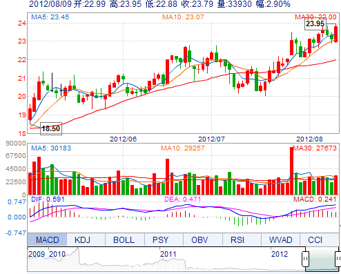 今 開: 22.99 成交量: 33929手 振 幅: 4.63% 最 高: 23.95 成交額: 8026.14萬(wan) 換手率: 1.86% 最 低: 22.88 總市值: 70.81億(yi) 市淨率: 5.57 昨 收: 23.12 流通...