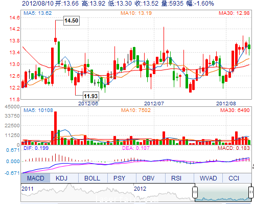 | 最 高: | 13.92 | 成交額: | 811.34萬(wan) | 換手率: | 1.78% |