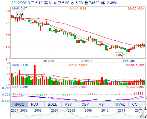 | 最 低: | 5.98 | 總市值: | 62.45億(yi) | 市淨率: | 2.10 |