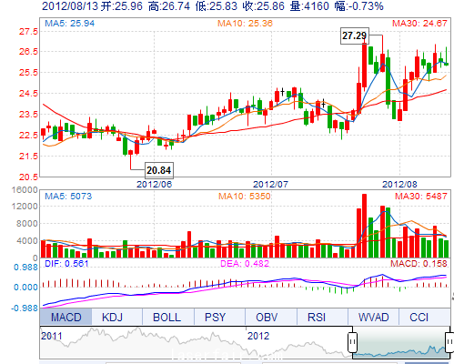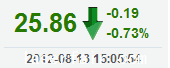 | 今 開: | 25.96 | 成交量: | 4160手 | 振 幅: | 3.49% |