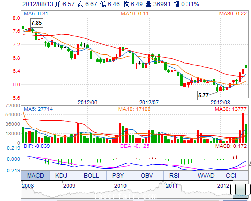 今 開: | 6.57 | 成交量: | 36990手 | 振 幅: | 3.25% |