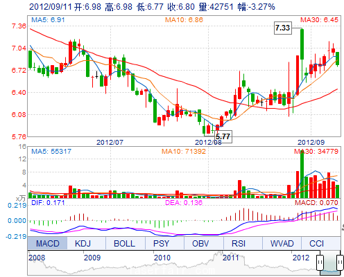 | 今 開: | 6.98 | 成交量: | 42750手 | 振 幅: | 2.99% |