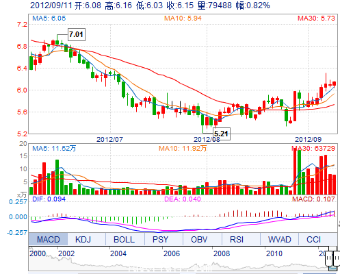 昨 收: 6.10 流通市值: 26.86億(yi) 市盈率TTM: 71.24