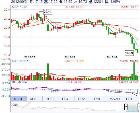 今 開: 17.15 成交量: 12281手 振 幅: 3.12% 最 高: 17.22 成交額: 2085.60萬(wan) 換手率: 1.02% 最 低: 16.69 總市值: 71.47億(yi) 市淨率: 5.10 昨 收: 17.01 流通...