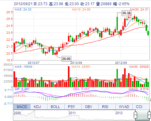 今 開: 23.73 成交量: 20889手 振 幅: 4.12% 最 高: 23.98 成交額: 4900.53萬(wan) 換手率: 1.14% 最 低: 23.00 總市值: 68.97億(yi) 市淨率: 5.43 昨 收: 23.80 流通...