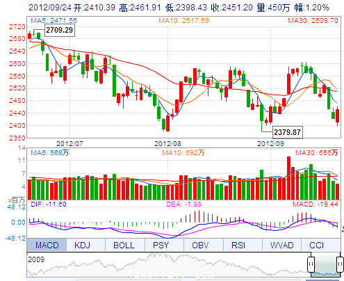 今 開: 2410.39 最 高: 2461.91 最 低: 2398.43 振 幅: 2.62% 昨 收: 2422.13 成交量: 4500150手 成交額: 486695.76萬(wan) 換手率: --