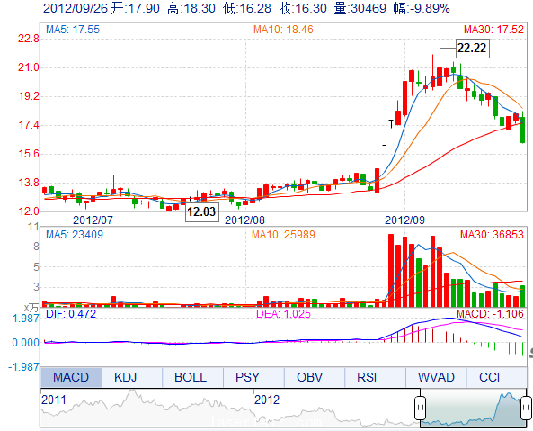 今 開: 17.90 成交量: 30468手 振 幅: 11.17% 最 高: 18.30 成交額: 5117.06萬(wan) 換手率: 9.15% 最 低: 16.28 總市值: 10.92億(yi) 市淨率: 3.51 昨 收: 18.09 流通...