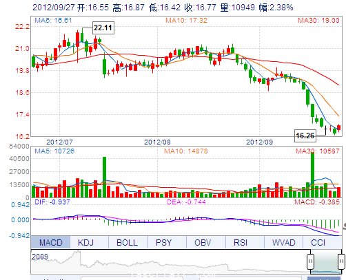 今 開: 16.55 成交量: 10949手 振 幅: 2.75% 最 高: 16.87 成交額: 1831.07萬(wan) 換手率: 0.91% 最 低: 16.42 總市值: 71.64億(yi) 市淨率: 5.11 昨 收: 16.38 流通...