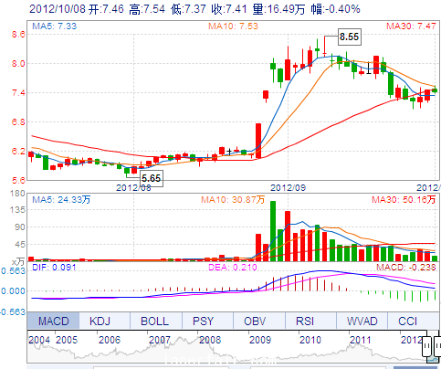 | 今 開: | 7.46 | 成交量: | 164901手 | 振 幅: | 2.28% |