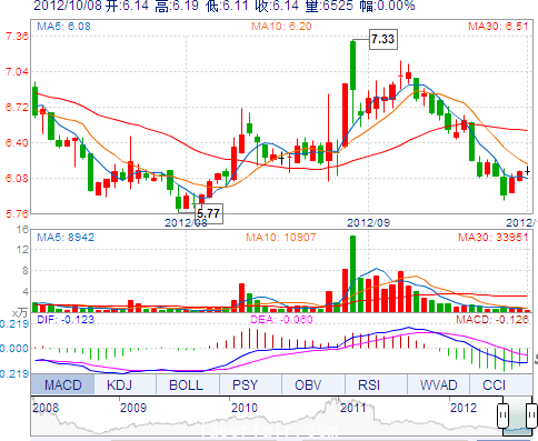 | 今 開: | 6.14 | 成交量: | 6525手 | 振 幅: | 1.30% |