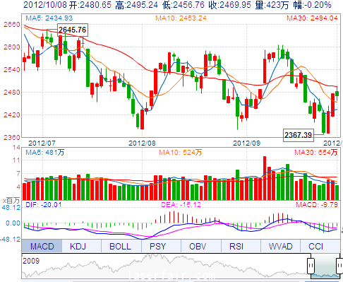 | 昨 收: | 2474.90 | 成交量: | 4225111手 |