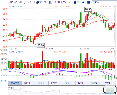 | 今 開: | 23.60 | 成交量: | 16543手 | 振 幅: | 2.55% |