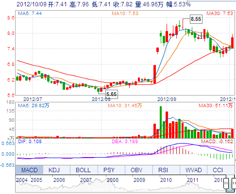 | 昨 收: | 7.41 | 流通市值: | 73.98億(yi) | 市盈率TTM: | 21.16 |