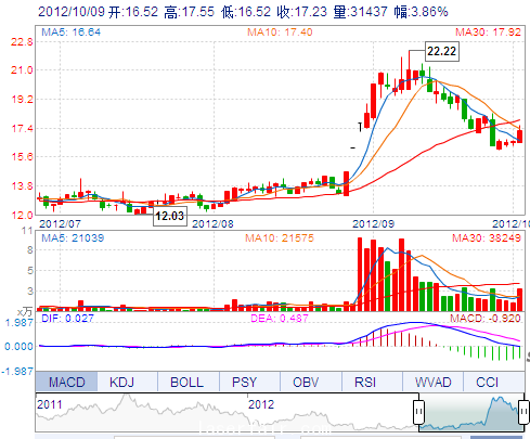 | 最 高: | 17.55 | 成交額: | 5374.41萬(wan) | 換手率: | 9.44% |