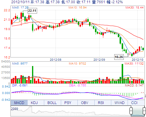 | 今 開: | 17.38 | 成交量: | 7660手 | 振 幅: | 2.17% |