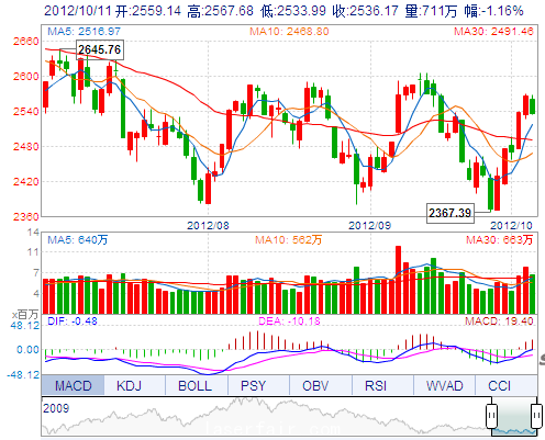 | 昨 收: | 2565.98 | 成交量: | 7107097手 |