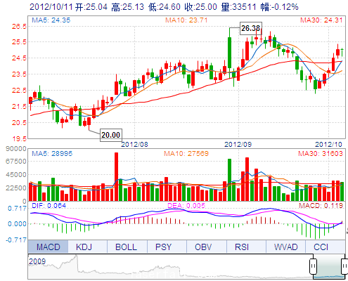 今 開: 25.04 成交量: 33510手 振 幅: 2.12% 最 高: 25.13 成交額: 8340.69萬(wan) 換手率: 1.83% 最 低: 24.60 總市值: 74.42億(yi) 市淨率: 5.85 昨 收: 25.03 流通...