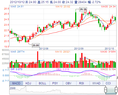 今 開: 24.90 成交量: 28404手 振 幅: 4.60% 最 高: 25.15 成交額: 6925.30萬(wan) 換手率: 1.55% 最 低: 24.00 總市值: 72.39億(yi) 市淨率: 5.70 昨 收: 25.00 流通...