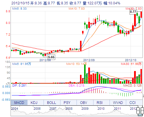 | 今 開: | 8.36 | 成交量: | 1220698手 | 振 幅: | 5.27% |