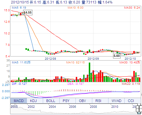 | 最 低: | 6.13 | 總市值: | 55.25億(yi) | 市淨率: | 1.07 |
