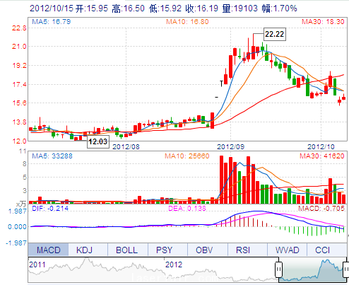 | 今 開: | 15.95 | 成交量: | 19103手 | 振 幅: | 3.64% |